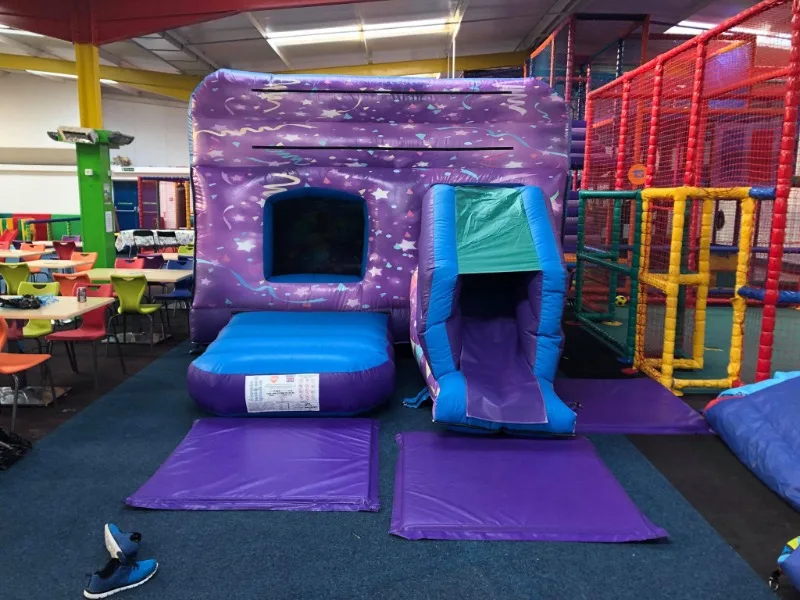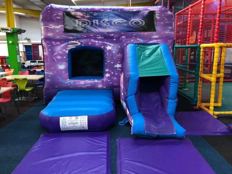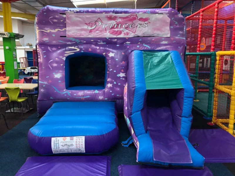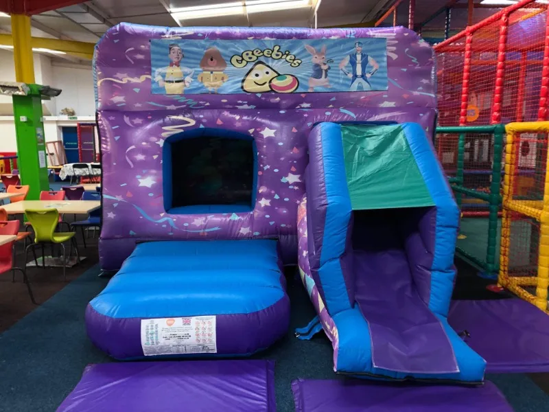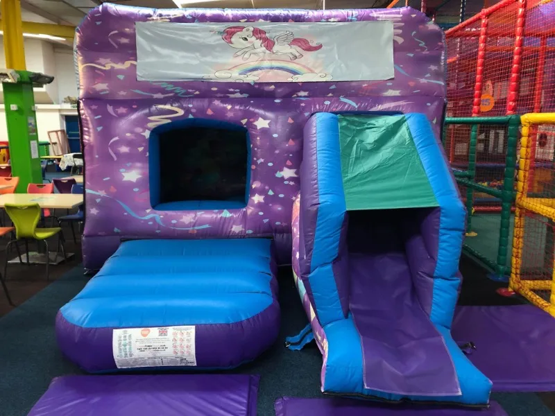 Keep your little ones entertained with our interchangeable themed box combi bouncy castle with front facing slide.